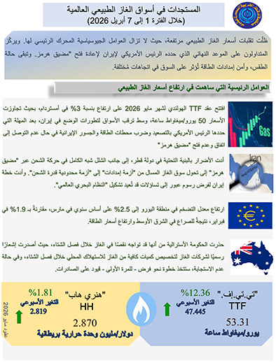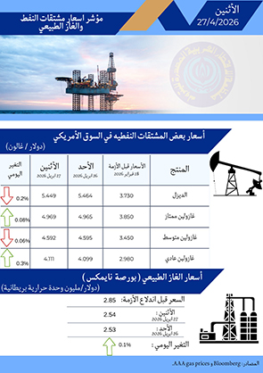 التطورات في أسعار النفط الخام والمنتجات النفطية وأسعار الغاز الطبيعي